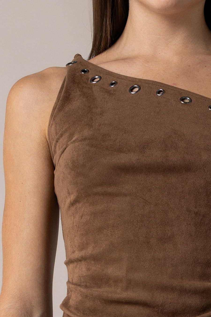 עמוד הבית CLOTHING SHIRTS & TOPS BB/LA N FAUX SUEDE ONE SHOULDER BROWN
