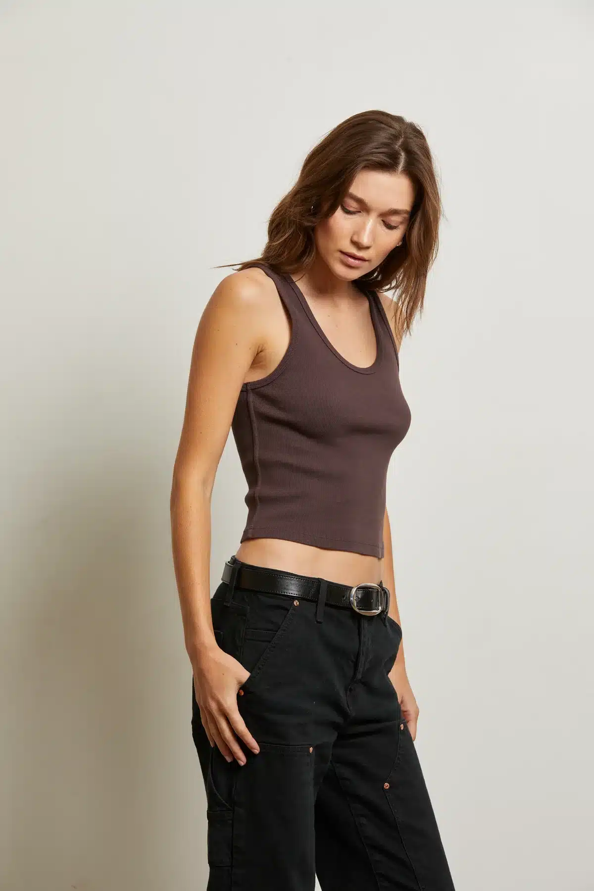 HAN KJOBENHAVN RIBBED CROPPED RACER TOP LIGHT SAND