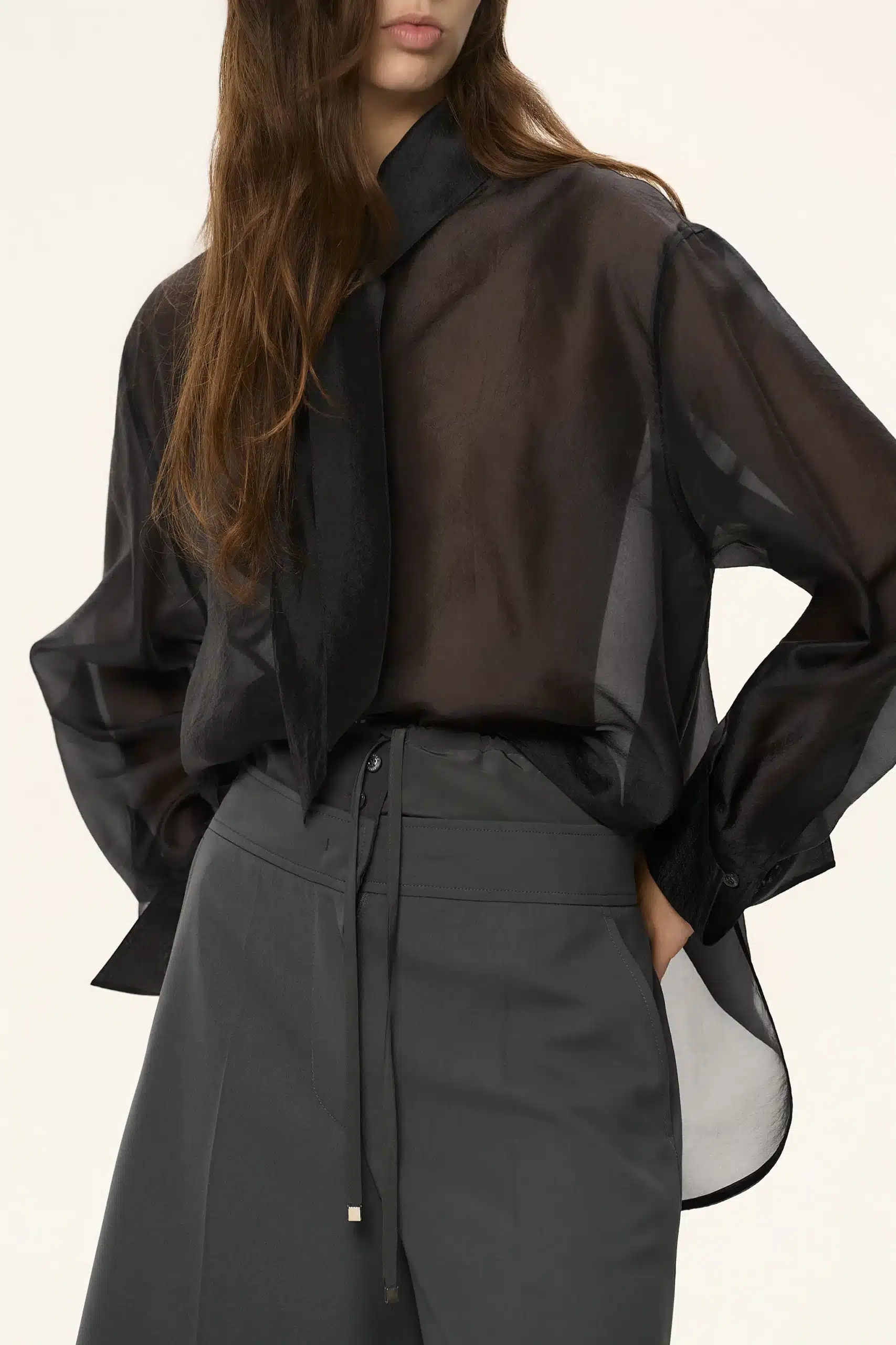 SYSTEM Sheer Scarf-Tie Blouse